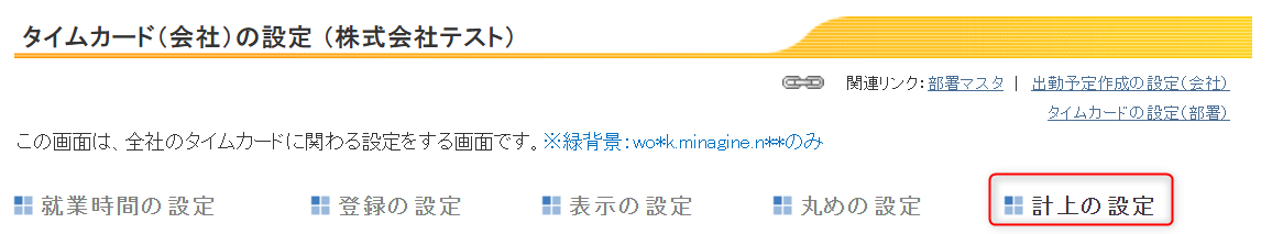 ミナジン勤怠管理システムにおける、タイムカード設定の計上の設定について説明します。