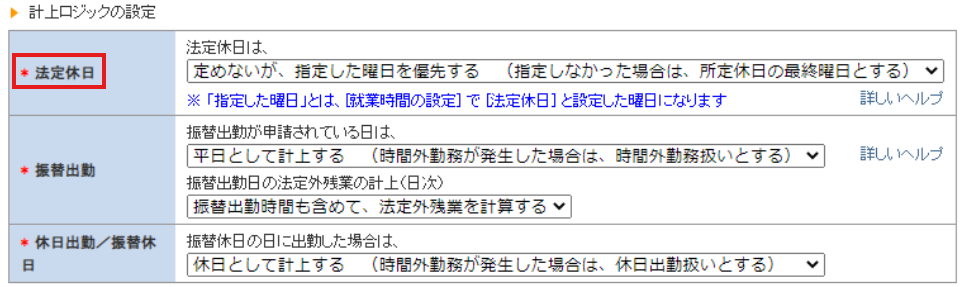 - 計上ロジックの設定①(法定休日・振替出勤・休日出勤/振替休日)